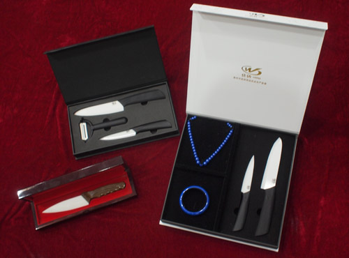 陶瓷刀,外觀如玉石般潔白柔和,色澤圓潤。用于現(xiàn)代廚房。它打磨的刀刃及刀面均勻一致切削靈巧方便,刀刃鋒利,硬度僅次于金剛石,陶瓷餐刀體現(xiàn)的是新世紀新材料的綠色環(huán)保概念?! 、?陶瓷刀不生銹變色,健康環(huán)保,可耐酸堿的腐蝕。 ?、?便于清洗,能保持食品的原色、原味,減少細菌滋生。